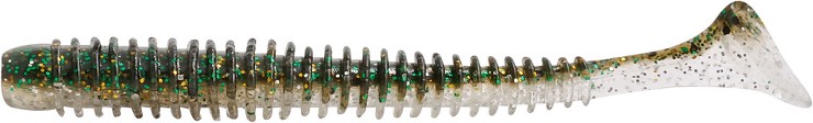 Il Rib Slim Shady è la versione più snella dello Swing Shad e si caratterizza per un corpo meno robusto e per una coda ancora più mobile che si anima con il minimo movimento. Può essere utilizzato con montature Texas o Carolina e, grazie alla grande naturalezza di movimento, anche a drop shot. La sua versatilità è tale che può essere usato, e con grandissimo profitto, anche in mare in combinazione con testine piombate non troppo grandi per la pesca della spigola.