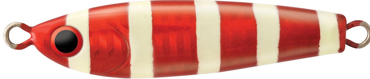 Esche ideali per la pesca sulle mangianze, sono i jig metallici da lancio, fra i quali spicca lo Shirasu di Rapture, caratterizzato dal profilo esclusivo, disegnato con l’assistenza del computer per ottenere un ottimale assetto di volo e raggiungere grandi distanze, evitando di disturbare il banco dei pesci. Si consiglia un recupero lineare a velocità allegra, per stimolare l’attacco di Serra, Lecce, Palamite, Tombarelli e Alletterati. Per agevolare l’impiego di questi jig nelle ore a scarsa illuminazione, come all’alba e al tramonto, la gamma dei colori disponibili comprende ben quattro versioni a tinte fosforescenti, che si caricano di luce presso una sorgente luminosa e producono un alone irresistibile. L’armatura ha una doppia configurazione: in testa, un amo assist con una piumetta in filamenti crystal, collegato tramite un bracciolo in PE, mentre in coda una robusta ancoretta in acciaio al carbonio con punte 3D Cut, fissata da un anellino sdoppiato in acciaio inox. Sul corpo di ciascun jig è inciso il peso in grammi.