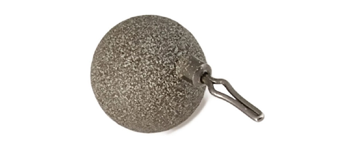 Piombo sferico per montatura Drop Shot. Una speciale verniciatura non consente all’acqua di entrare in contatto con il piombo e assicura un effetto mimetico.