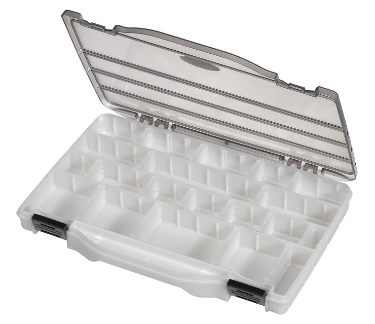 Riporre ami, girelle e minuterie sottili è sempre stato un incubo per tutti i pescatori, perchè all’interno delle scatoline classiche tendono a mischiarsi per via delle fessure che rimangono leggermente distanti. Proprio per evitare questo spiacevole inconveniente abbiamo ideato e studiato la SLIM SERIES, una coppia di box a scompartimenti modulabili, disegnate appositamente per contenere questo genere di attrezzature. Lo speciale incastro (SLIM LOCK) ottenuto tra le guide del coperchio e i divisori interni elimina ogni minima intercapedine e garantisce una pefetta separazione degli scompartimenti.