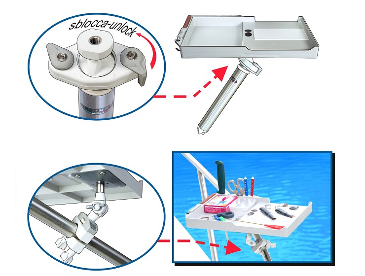 Serbidora in materiale plastico resistentissimo perfettamente smussato e privo di angoli taglienti. Munita di nicchia per contenere vaschette porta-esche e minuteria varia in modo stabile e sicuro. Molte altre caratteristiche importanti fanno di questa serbidora un vero e proprio completo banco di lavoro indispensabile su ogni barca. Fornita completa di palo snodato inox, morsetto e giunto regolabile.