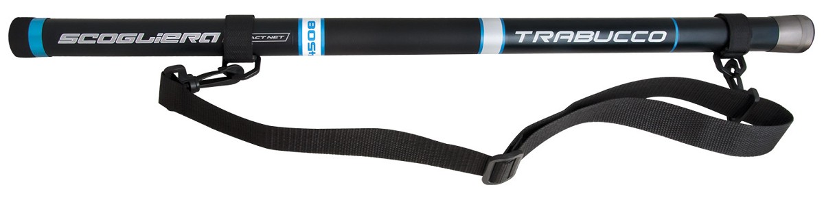 Un palo veramente speciale, dedicato a chi ama la pesca in mobilità, come street fishing e rock fishing, ma anche per chi si incammina sulle difese portuali o sulle scogliere naturali; infine per chi viaggia e necessita di ingombri molto contenuti. Dotato di tracolla regolabile, fissata all’impugnatura per mezzo di bande in Velcro e pertanto asportabile, ha una lunghezza che consente di andare ovunque in tranquillità. La struttura telescopica è in carbonio ad Alta Resistenza; il tappo superiore è prodotto in EVA per offrire una tenuta ottimale, ma anche per poterlo sbloccare con una sola mano. Esso incorpora la boccola filettata, così è possibile spostarsi tenendo la testa del guadino avvitata, pronta all’uso. Con un rapido gesto del braccio che lo impugna, il palo si estende fino a portare in acqua la testa, e l’azione di guadinamento può avvenire senza che le sezioni siano estese completamente. La scelta fra le teste guadino Trabucco è vastissima, ma si consiglia di optare per un modello dotato di bracci galleggianti.