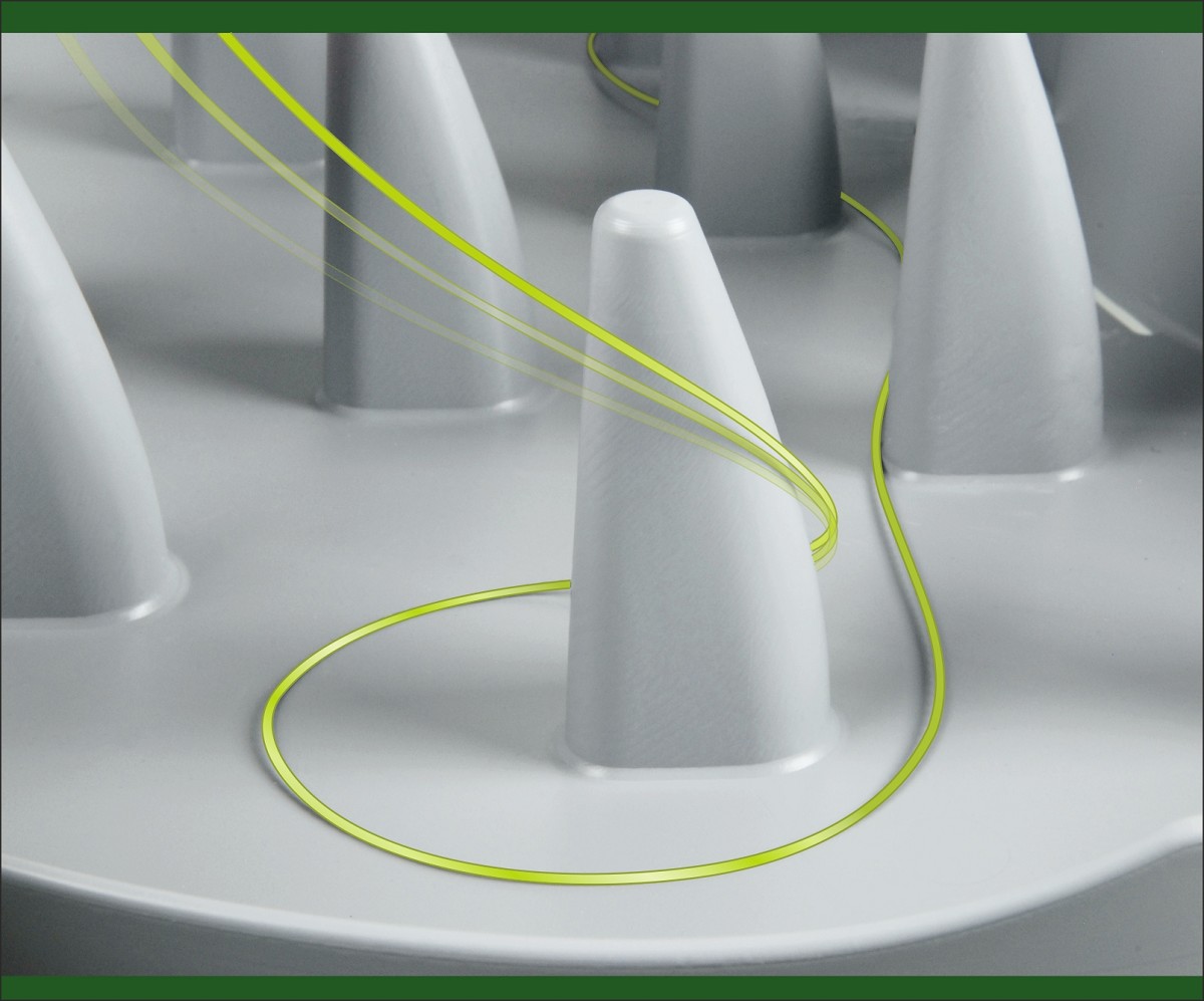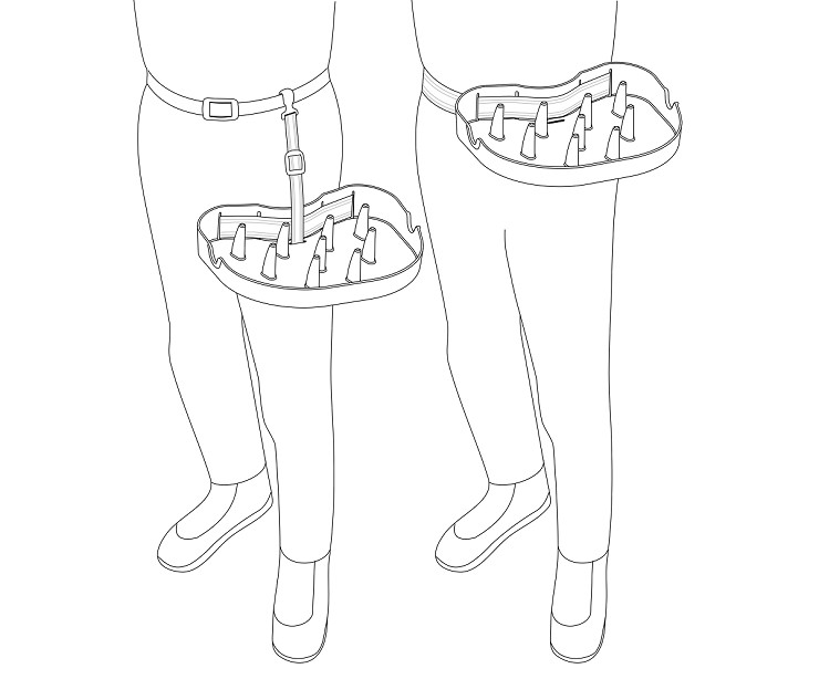 Cestello per coda, prodotto con materiale molto resistente, può essere posizionato rapidamente sia alla vita che sulla gamba per mezzo di due cinture a sgancio rapido. I nove coni anti-groviglio di cui è munito hanno una speciale forma a pinna di squalo per garantire una ottimale fuoriuscita della coda durante il lancio. Dotato di sede poggia canna.