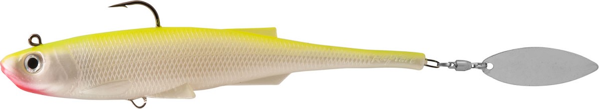 Mad Spintail rappresenta l’ultima frontiera nelle pre-rigged softbait, realizzato con le ultimissime tecnologie per ottenere particolari 3D naturali e realistici. Realizzato con una paletta montata in coda, che produce vibrazioni e bagliori in grado di attirare i predatori. Questa ruota freneticamente anche a basse velocità grazie alla girella, connessa tramite un cavetto che corre lungo il corpo. Mentre quest’ultimo lineare e pesante consente lanci lunghi e precisi. Ideale se impiegato con un recupero lineare attorno a cover o strutture, sondando gli strati d’acqua alternando la velocità di recupero, oppure intervallando un’azione di twich o jerk per ottenere un’azione di sali/scendi su pareti ed ostacoli.