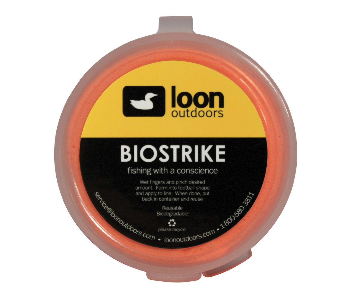 A putty indicator that makes adjusting the depth and size of indicator simple. Beyond that, it is reusable, biodegradable, and environmentally friendly. BioStrike can be rolled in a ball with wet fingers and applied anywhere on a leader, then removed and placed back in the container.
