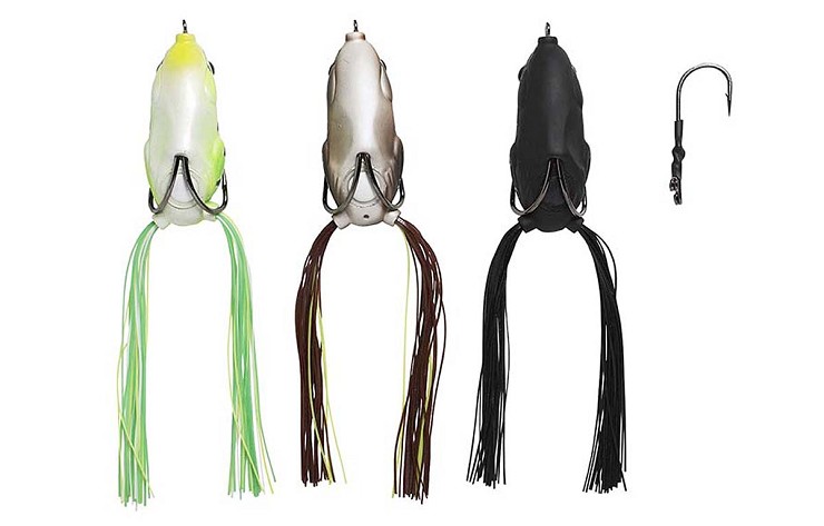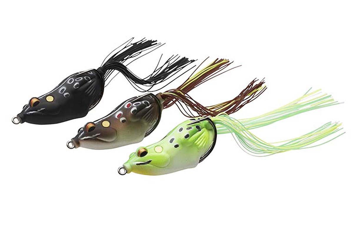 Hollow Body frogs with superb details and a realistic profile. Lively, durable Silicone Skirt legs. 2 Models, the Walk frog, that walks across the surface on retrieve and Pop Frog, that makes a deep plopping sound on the pull Both models build over an ultra sharp Double hook – with detachable single hook stinger! Superb for Bass & Pike!
