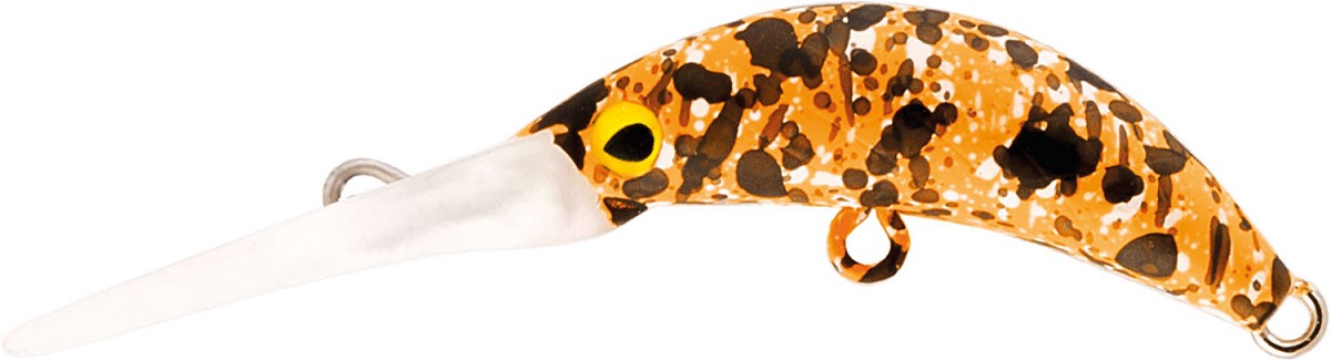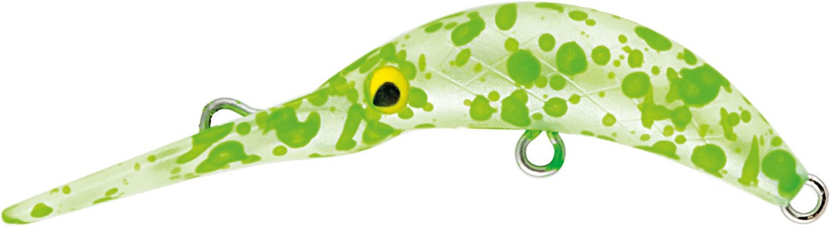 In laghetto allarga il ventaglio delle opportunità di cattura, perché nuota a profondità relativamente elevate e perché la forma del suo corpo è tale da consentire un recupero lentissimo, che si rivela efficace nei confronti di trote indolenti. In effetti, la grande superficie della paletta e la posizione dell’anellino di collegamento alla lenza fanno affondare il Diavel Deep rapidamente, dopo l’impatto con l’acqua, e gli fanno mantenere una batimetrica di nuoto che, nella maggioranza dei laghetti da Area, corrisponde alla totale profondità. La sagoma molto arcuata e la schiena larga lo fanno oscillare freneticamente anche ai bassi regimi di recupero, dando il tempo alla Trota svogliata di fermarlo senza sprecare troppe energie. La gamma dei colori spazia dai toni molto chiari a quelli molto scuri, consentendo di optare per il contrasto o per l’allineamento, rispetto ai colori dell’ambiente o all’intensità dell’illuminazione. Ben otto sono i colori Cluster, cioè realizzati a spruzzo per ottenere completa casualità. Gli ami singoli senza ardiglione sono di classe 3D Cut Powerpoint.