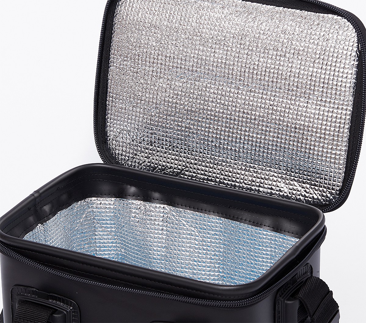 WPMP COOLER BAG L This waterproof cooler bag is made from a super durable EVA material with 5mm insolation and supplied with two cooler elements. It also features oversized double-headed zippers for practical use and a detachable shoulder carry strap. The perfect cooler for lunch and drinks on a two-person day session.