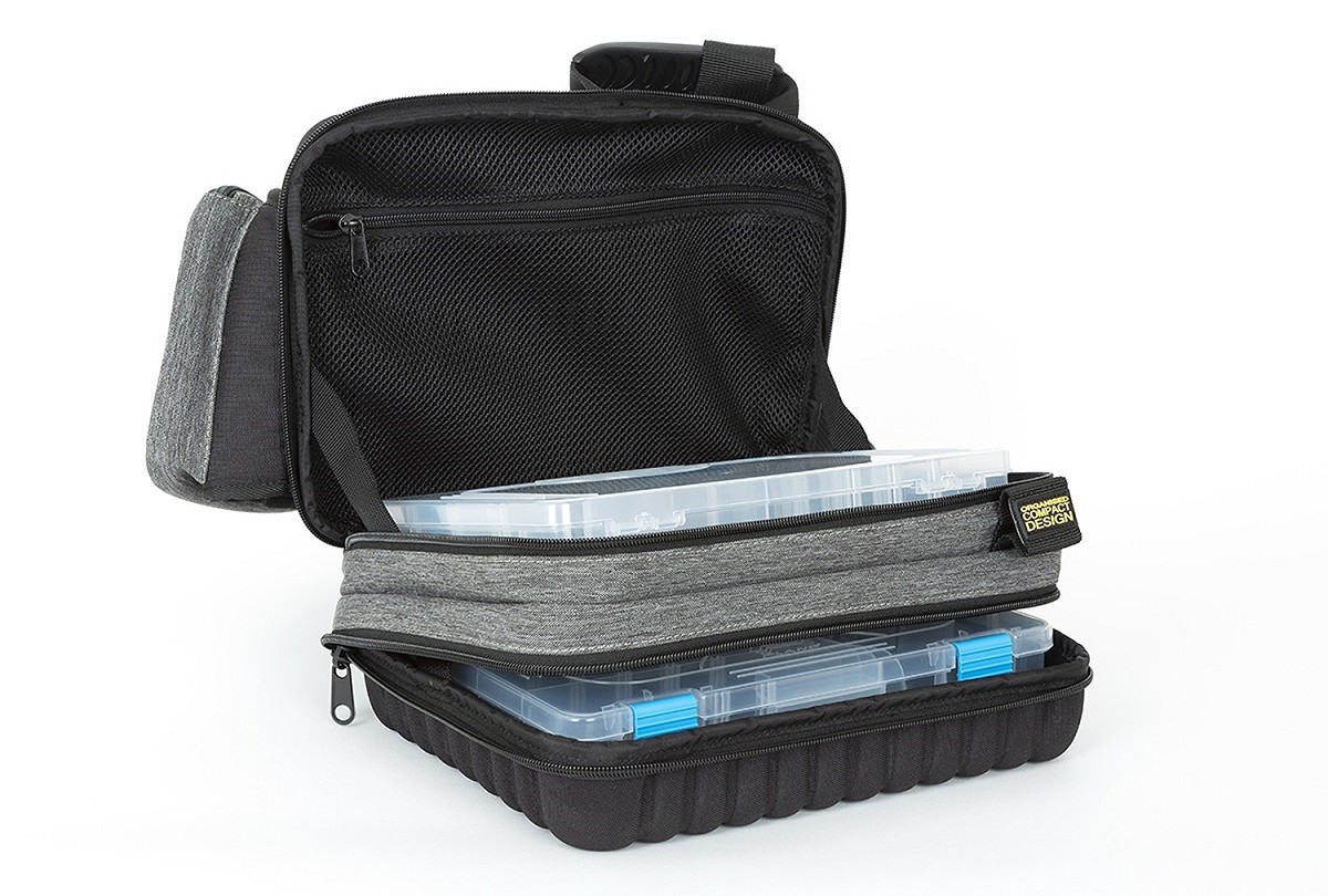 Supplied with 2 Medium Plano Lure boxes. OCD connection on front and sides. 2 zipped compartments with internal pockets. 90 degree opening for quick access. Tool pockets in quick access positioning of tackle box. Outer pocket for scales or tape measure.