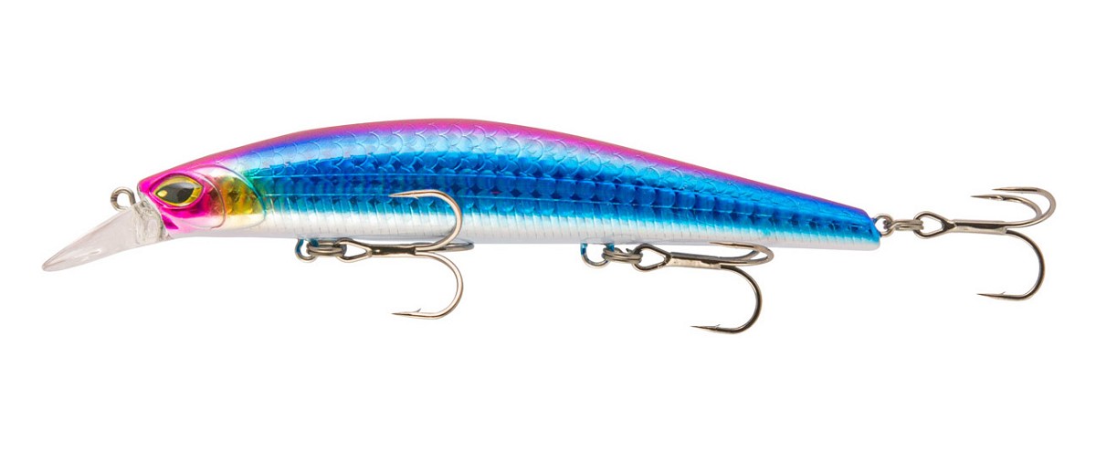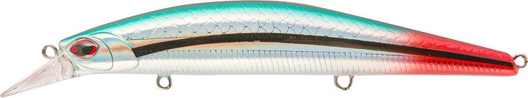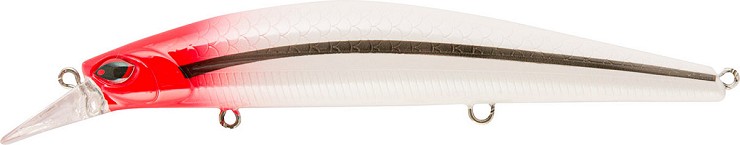 La tavolozza dei colori contiene le imitazioni dei pesci foraggio, ma anche alternative con pennellate di rosso, a simulare le perdite di sangue delle prede ferite. Infatti sono due gli stili di recupero, per un Coastmaster: la classica fuga lineare, tipica dei pesciolini in salute, e l’incedere a zig zag, con pause e risalite verso la superficie, che per Spigole e altri predatori pelagici sono il segnale di “cibo facile senza spreco di energie”, perché così si comporta un pesce in difficoltà. Questo Long Jerk a tre ancorette è preparato per nuotare negli strati superficiali del mare, nella fascia compresa fra mezzo metro e un metro e mezzo. La sua paletta è molto ampia per ricevere una grande pressione nel recupero, agevolando il raggiungimento di profondità superiori; un aspetto accentuato dal disegno della testa, che è appiattita, quasi a configurare un prolungamento della paletta.