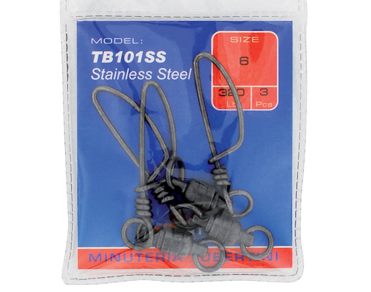 Girella con moschettone dotata di cuscinetti a doppia rotazione, interamente in acciaio inox, che le conferisce massima resistenza e affidabilità.