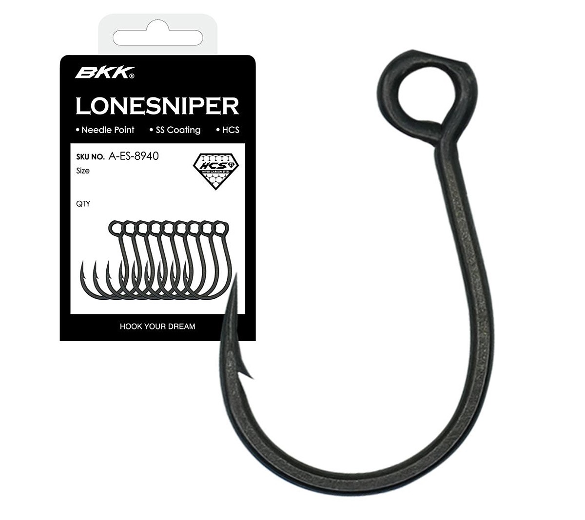 The BKK LONESNIPER is an inline single hook developed for freshwater and saltwater inshore applications. Features include a needle point and SS (Super Slide) coating that provides cutting-edge sharpness and penetration performance. The peculiar hook shape maximizes the hookup rate and maintains the grip throughout the fight. In addition, the BKK proprietary HCS (Hyper Carbon Steel) enables the overall structure to achieve unprecedented levels of strength.