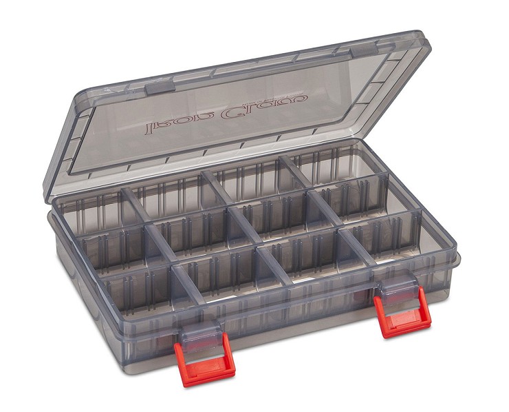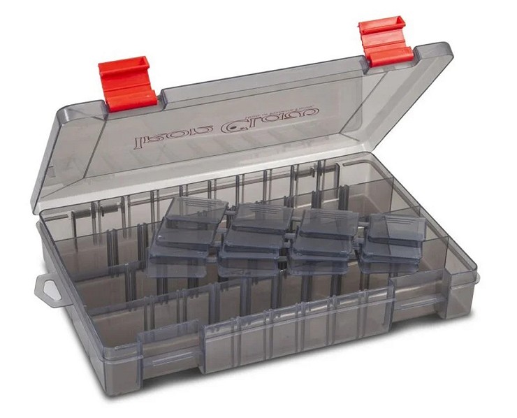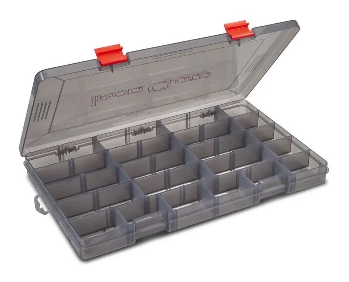 The complete bait box program has been revised and expanded. The new Iron Claw Vario boxes are all colored in transparent gray and thus provide a certain degree of UV protection, which, for example, prevents the bait from fading. The dimensions of each box and its internal layout are shown in the following product images. In the future, exactly these Vario boxes will be found in the majority of Iron Claw bags equipped with boxes. This makes finding the right box as a replacement or exchange much easier.