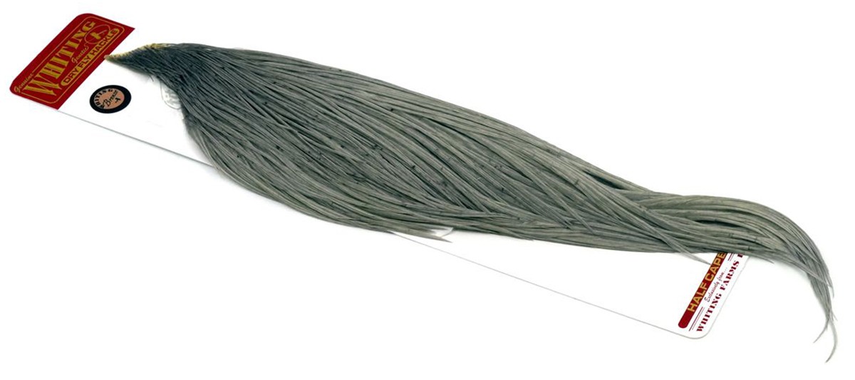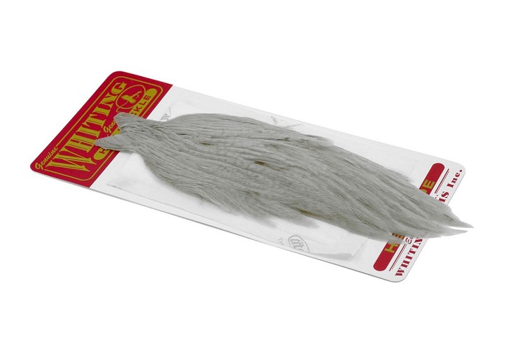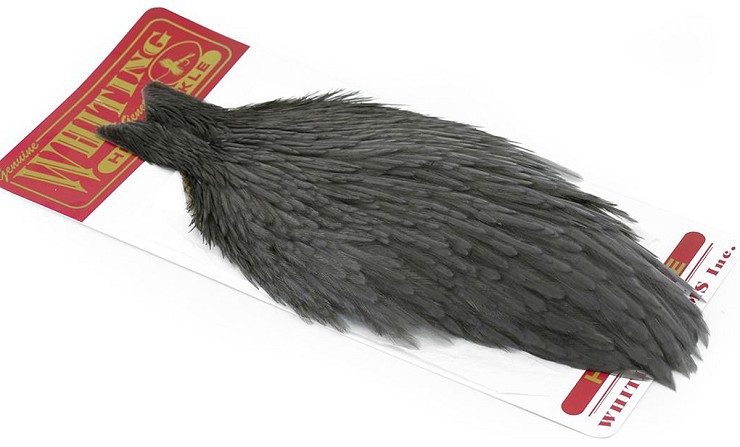The Whiting Hen Cape is the most widely used Hen cape in the world today. It provides a high quality feather excellent for a myriad of tying applications. Hen cape hackle is a basic and essential tying material. One of its principle uses is for upright dry fly wings. Or when wrapped it creates a great nymph or wet fly collar. The larger hen cape feathers are also excellent for matuka flies, streamers and whole feather wings. Every fly tier should have a full array of hen capes at their tying bench.