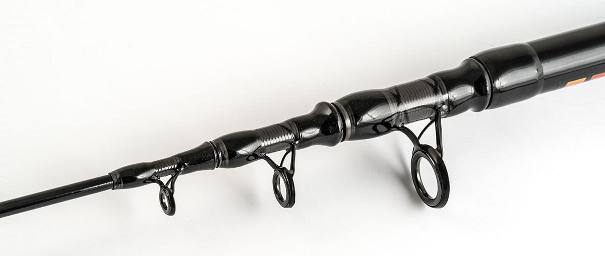 - Fusto telescopico realizzato in carbonio High Modulus CX1 Micro Pitch, rinforzato da filamenti esterni incrociati di carbonio.