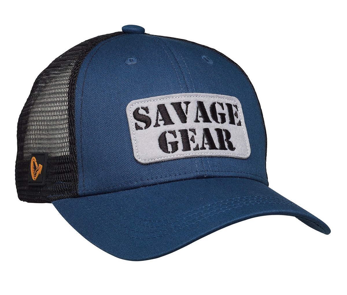 Classico cappellino modello “trucker” con rete posteriore e patch con logo ricamato applicata davanti.