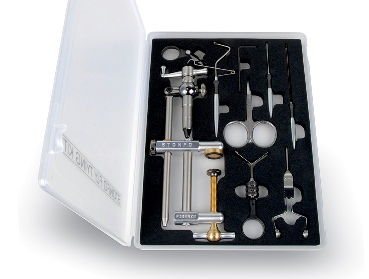 Set composto da un morsetto Flylab e 7 utensili per la costruzione di mosche artificiali e streamers. Fornito in una robusta scatola il cui interno in gomma è sagomato per dare ad ogni utensile un preciso alloggiamento.