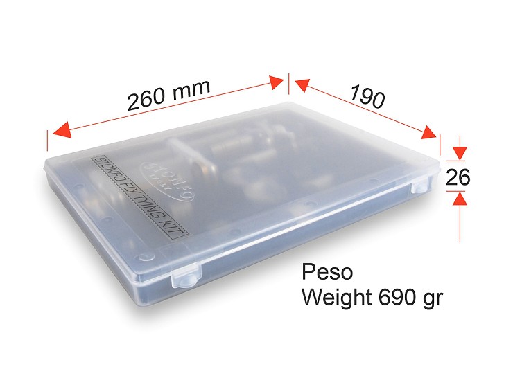 Contenuto: Morsetto Flylab, Forbicine, bobinatore Bobtec1 con tensionamento del filo regolabile, Passafilo, Annodatore-Annodatore conico, Spillo di montaggio, Pinza per hackles, Rotodubbing mini, chiave a brugola. All’interno dettagliate istruzioni per l’uso del morsetto e dei vari utensili.