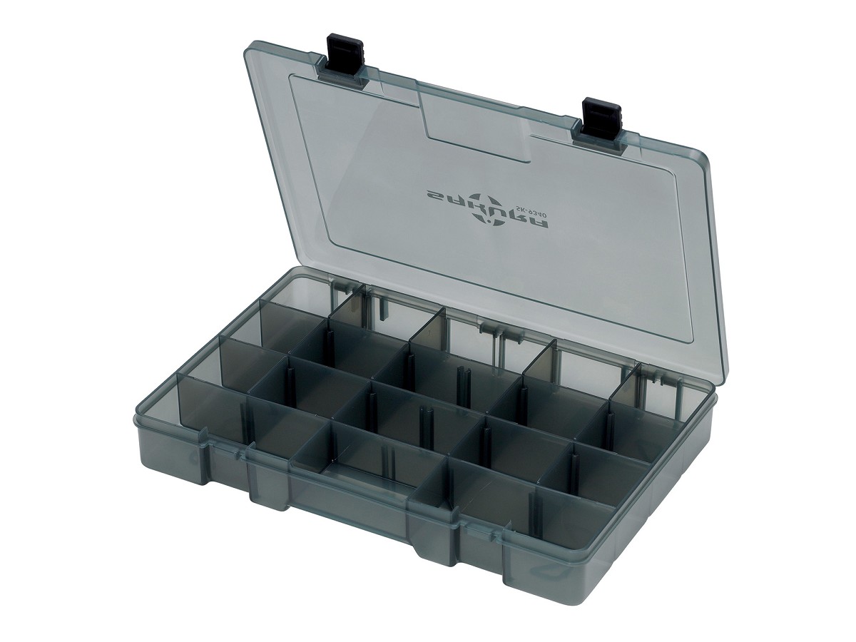 Sakura Box SK-9340, è una tackle box modulabile realizzata specificamente per la disposizione di artificiali rigidi, morbidi, minuteria, fili, pinze ed altri accessori da pesca. La scatola porta-esche Sakura è prodotta in Giappone da Meiho con materiale "wormproof" che impedisce che gli artificiali morbidi si attacchino alla scatola con temperature elevate e permette corretto alloggiamento e facile estrazione di ogni esca grazie ai divisori removibili al suo interno. La scatola da pesca Sakura è divisa orizzontalmente ed è provvista di 12 divisori che ne permettono la suddivisione fino a 20 compartimenti. Ideali per la pesca a lurefishing in genere, pikefishing e bassfishing.