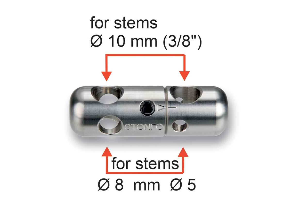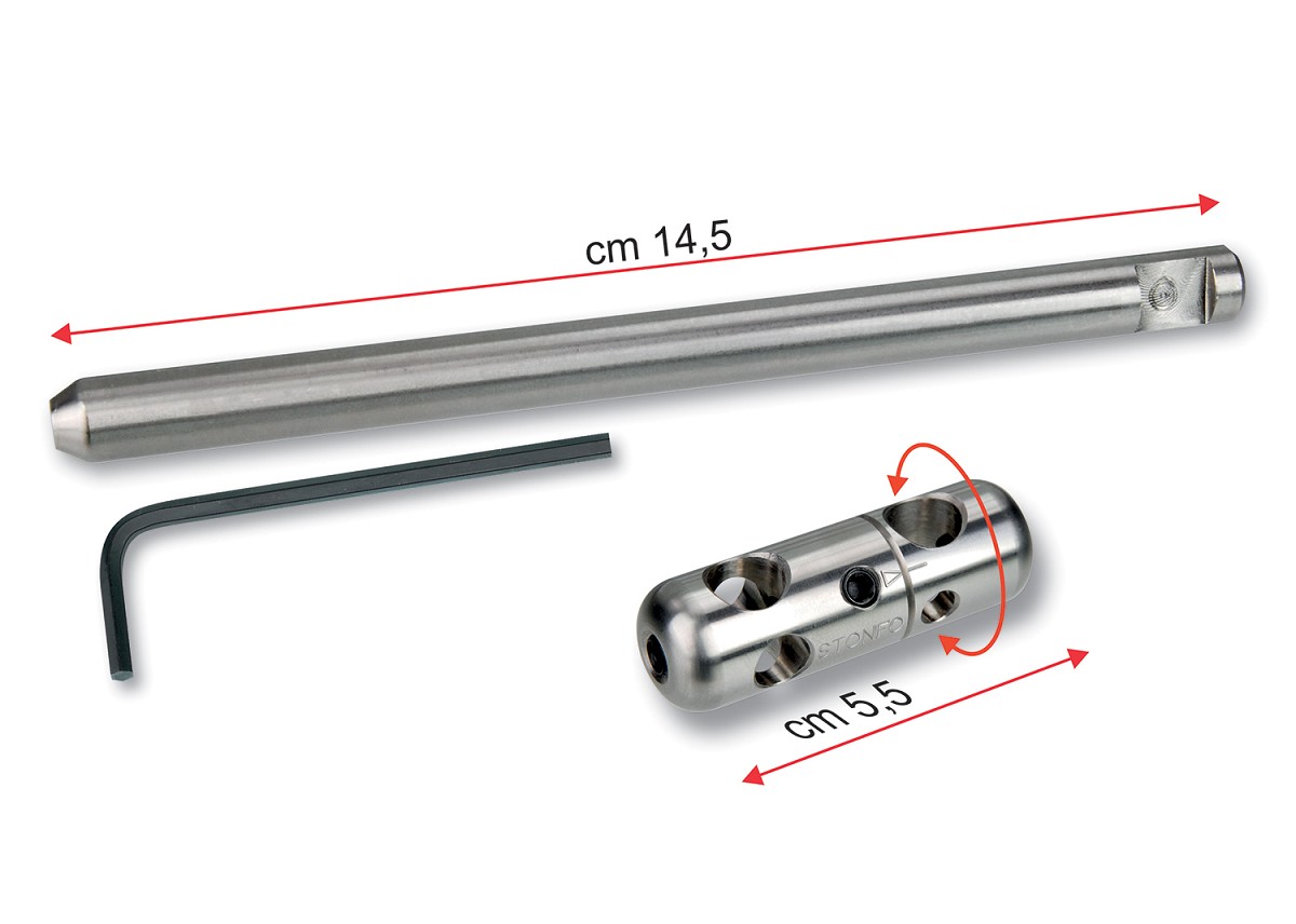 Giunto in acciaio inox con regolazione angolare. La confezione include 1 giunto, 1 asta di estensione lunga 145 mm e 1 chiave a brugola. Questo accessorio permette di: