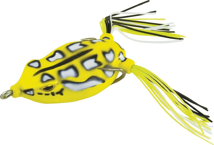 Imitazione di rana dal corpo in gomma tenera cava, molto realistico. Buona lanciabilità ed ottimo assetto in acqua, assolutamente imitativo. Le zampe, composte da un ciuffo di elastici siliconici, garantiscono ottima mobilità all’esca, evitando di farla impigliare negli ostacoli. Gli ami doppi con cui è armata sono affilatissimi, robusti e di grande spessore, in grado di estirpare grossi pesci dalle cover più fitte. All’interno del corpo si trova una sfera (rattling) in grado di farla percepire anche a distanza o quando la si utilizza lanciandola sopra agli erbai o nei canneti più intricati. Questa sferetta è asportabile per aumentare la galleggiabilità della rana, rendendola più visibile, smontando e rimontando la piombatura posta sotto la pancia. Disponibile in cinque colorazioni e tre taglie: