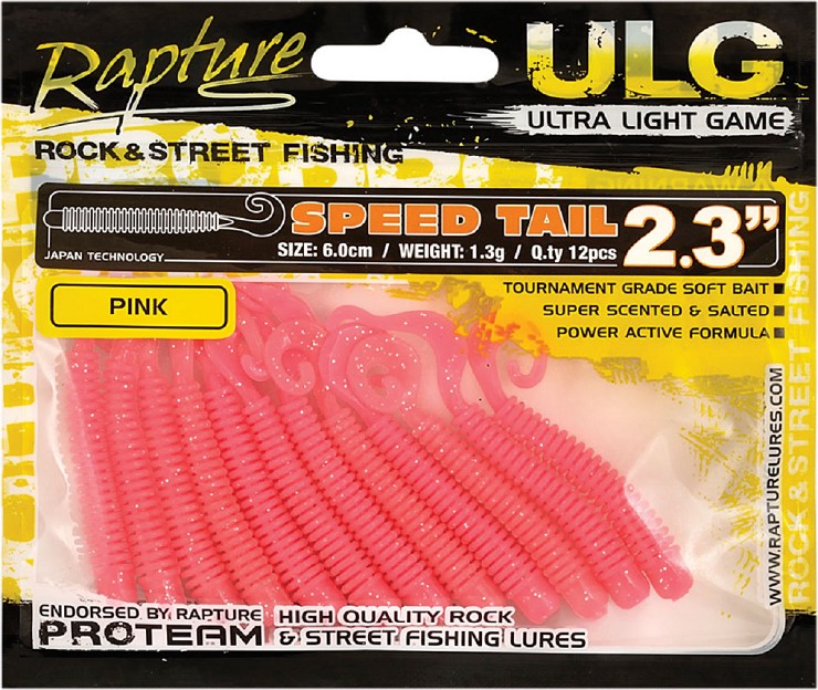 Speed Tail è un’esca di medie dimensioni, dal corpo estremamente mobile e in grado di creare un grande numero e una grande varietà di vibrazioni. Il corpo dotato di costolature riesce infatti a perturbare l’acqua con vibrazioni ad alta frequenza, mentre la coda a falce produce vibrazioni a bassa frequenza. Micidiale nei confronti di piccoli e medi predatori. Nelle colorazioni più chiare e brillanti trova impiego anche nella pesca in mare alla spigola, dove non solo i piccoli esemplari verranno letteralmente stregati dal suo movimento.
