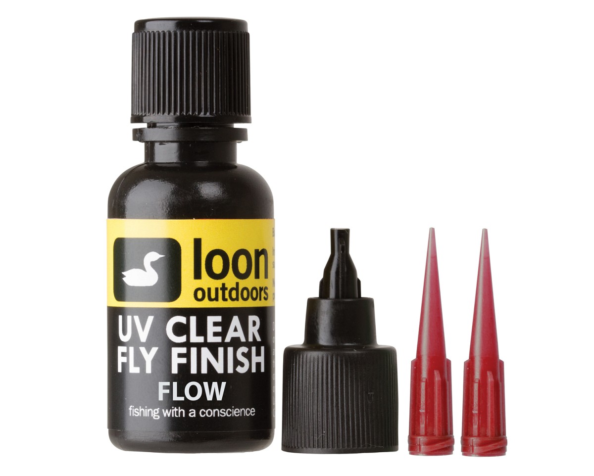 The thinnest UV resin available from Loon, Flow is thin enough to work as a head cement replacement, but strong enough to coat heads, bodies and midges. Cures within seconds when exposed to Loon's UV Bench Light or UV Infiniti Light.