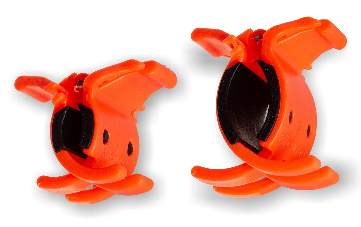 Clip a molla con guancette in gomma antiscivolo per fissare la lenza, anche se più lunga, sulle punte della roubaisienne. La busta contiene la misura piccola (da Ø 6 a Ø 22mm) e la misura media (da Ø 14 a Ø 33mm).