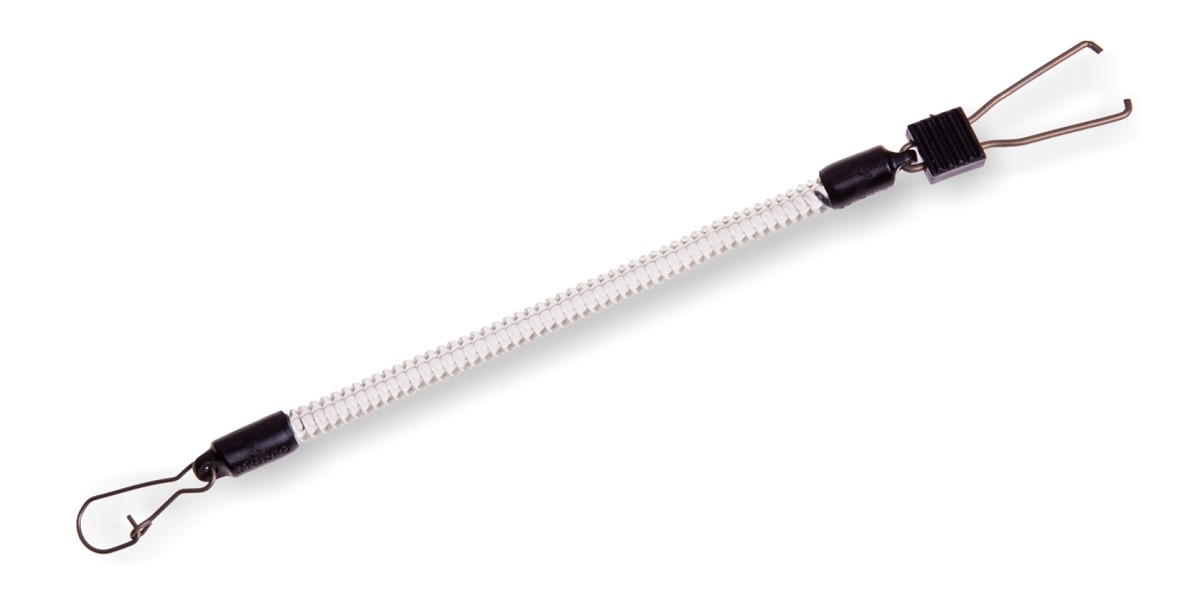 Molla in materiale plastico durevole con clip e moschettone. Utilissima per agganciare qualsiasi utensile, scatola o altri accessori al gilè o ai pantaloni.
