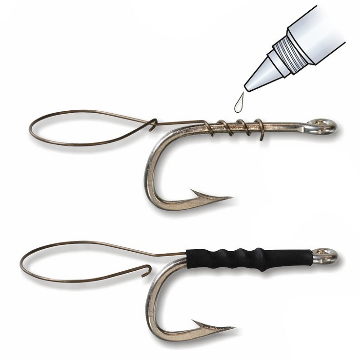 Anelli in acciaio inox per l’innesco facile e rapido del pesce vivo tipo sugarello, sgombro, muggine, boga etc. L’anello viene avvitato direttamente all’amo, bloccato definitivamente con una goccia di colla cianoacrilica e protetto con guaina termoretraibile inclusa nel prodotto.