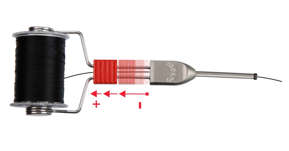 Bobinatore in acciaio inox con tubetto di diametro maggiorato indicato per filati di grande spessore. Il tensionamento del filo è regolabile tramite cursore. Permette un cambio rapido della bobina. Il tubetto scorrifilo ha alla sua estremità una boccola in acciaio temprato resistentissima all'usura e agli urti. Perfettamente bilanciato per la rotazione è ideale nella realizzazione di dubbing in asola creata dividendo il filo.